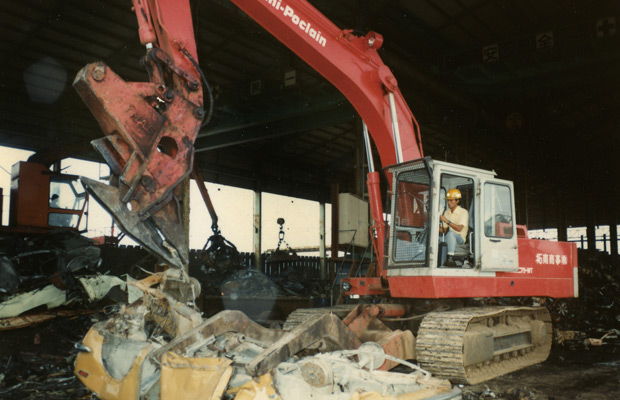 1980年油谷重工為滿足用戶需求開發(fā)銷售了國產(chǎn)首臺(tái)裝載固定式切割機(jī)的汽車解體機(jī)。利用夾鉗臂按住物體,切割機(jī)進(jìn)行切割的汽車解體機(jī)與過去依賴人工的方法相比,在作業(yè)效率和安全性能上得到了全面的提升。并為此后的多功能汽車解體機(jī)和發(fā)動(dòng)機(jī)解體機(jī)的誕生打下了堅(jiān)定的基礎(chǔ)。