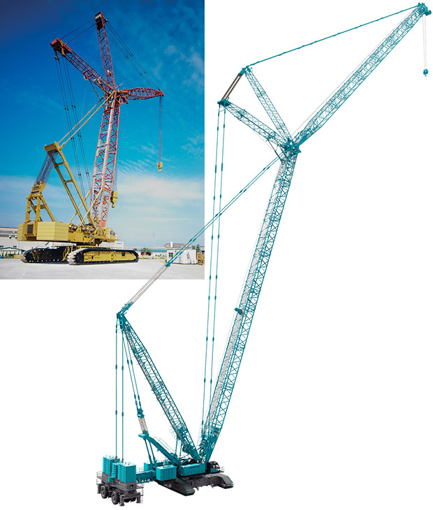 1984年神戶制鋼獨(dú)自開發(fā)了全液壓式吊裝450t的履帶起重機(jī)7450型,提高了其在海內(nèi)外的知名度。1970年開始,利用其卓越的技術(shù),開發(fā)出行業(yè)領(lǐng)先、吊裝超過300t的神戶制鋼“超大型履帶起重機(jī)”,開啟了超級(jí)大型起重機(jī)的“新時(shí)代”。1993年上市的SL13000型是載入史冊(cè)的楷模, 800t吊裝使提高產(chǎn)品吊裝能力的設(shè)計(jì)思想變成了現(xiàn)實(shí)。